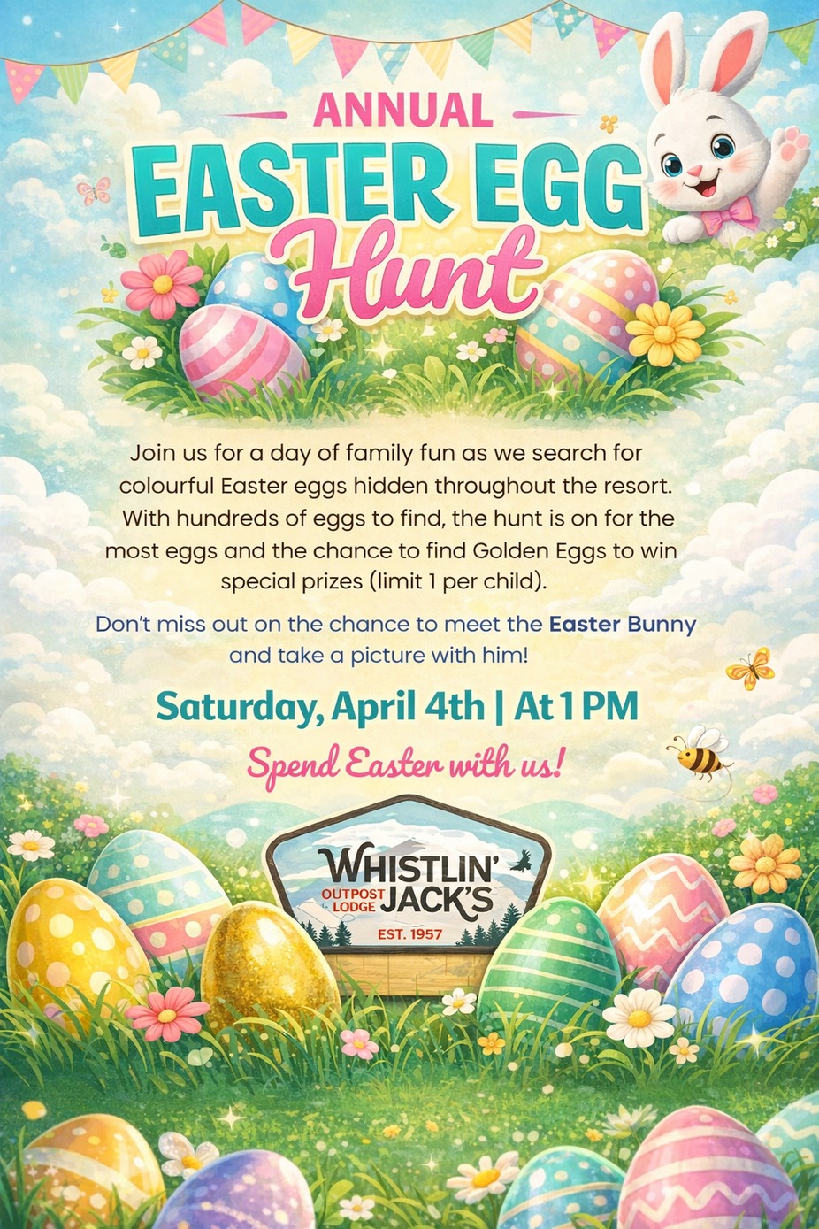 Join us at WJL for a free Easter Egg Hunt! Meet the Easter Bunny and take picture with him.