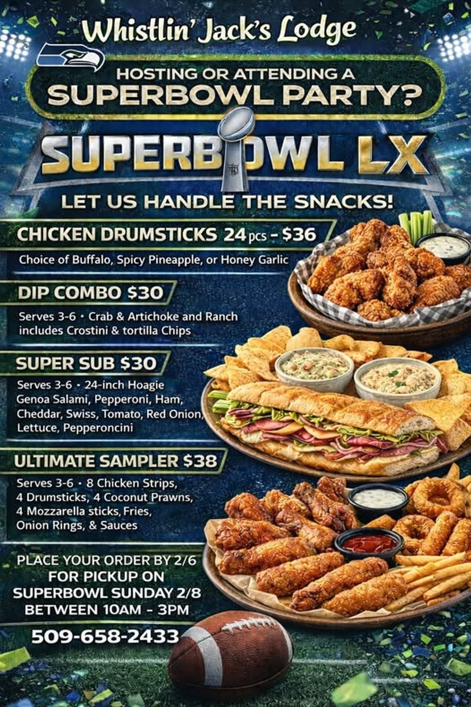 Watch the big game with the WJL crew or order take out to enjoy at home with your crew!